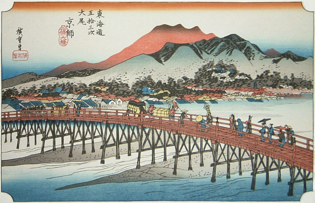 Sanjo Ohashin silta Kiotossa, sarjasta 53 asemaa Tōkaidōn tien varrelta